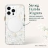 Petite Fleurs MagSafe Phone Case for the iP 15 Pro Maxの可憐な花々は、あなたの携帯電話に毎日新鮮な花のような表情をもたらします!12フィート(約1.5m)の高さから携帯電話を守る落下防止機能付きで、マグネットが内蔵されているため、MagSafeアクセサリーや充電が簡単に行えます。