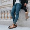 based on the classic Chelsea style. They are an easy pull-on and off shoe perfect for any event. The upper material has been constructed from boxcalf leather from Italy. while the counter is then constructed from a full grain leather that uniquely features an embossed croc detailing. With that interior completely lined with natural calfskin. the sole unit is stacked leather with a rubber insert. They easily become an instant favorite having them made with Blake Construction.