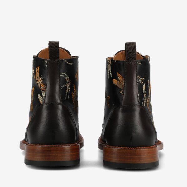 The Jack in Black Dragonfly is the ultimate boot for the bold. Feel fly with golden dragonflies against black Jacquard weave. These boots have had over 2.000 5-star reviews. and for a good reason too. Their lace-up feature makes them more reliable. comfortable. and built to last. The sole features leather with some rubber details that give it that perfect grip and durability. With how versatile they are. you can wear them to a formal event or with your casual clothing.