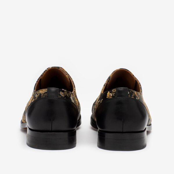 Meet The Jack Shoe in Eden Noir. This shoe is comfortable. built to last. and guaranteed to get compliments. The sole unit is leather with rubber inserts for added grip. durability. and comfort. This is a versatile shoe that will take you from formal attire to casual wear in elevated style. Stand out from the crowd in art you can wear.