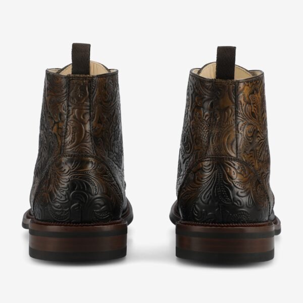 Meet the Rome Boot in Oro Viejo. The hand-burnished floral embossing is a work of art. We spared no detail on this boot and the comfort and quality will show from the moment you put them on.