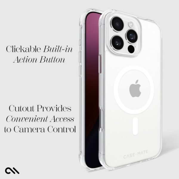 Let’s get back to the not-so-basics. The Tough Clear MagSafe Phone Case for the iP 16 Pro Max checks all the boxes you want in a clear case— strong. crystal clear. and made to be loved for a long time! We know how much you love your phone. so feel confident it’s safe with 12-foot drop protection while strong built-in magnets allow for easy MagSafe accessorizing and charging.