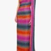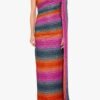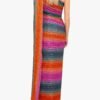 Make an entrance in the Vella Gown. This asymetrical one-shoulder silhouette drapes effortlessly. featuring a pleated texture that enhances its multicolor design. A built-in cape detail cascades from the shoulder. adding movement to the sleek column fit.